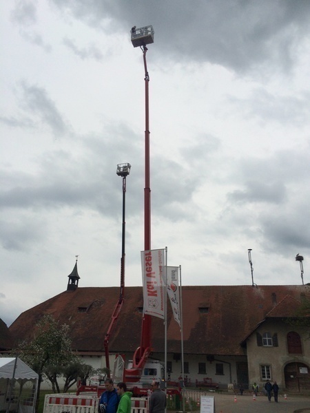 Um größtmögliche Flexibilität bei schwierigen räumlichen Verhältnissen zu gewährleisten, setzen wir kompakte Geräte mit einer Höhe von unter 200cm und einer Durchfahrtsbreite von nur 85cm ein. Des Weiteren sind die Hubsteigerfahrzeuge geländegängig.