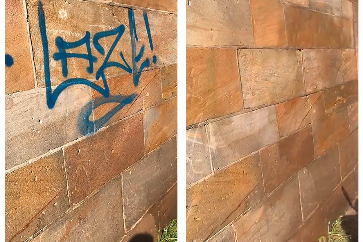 Störende Graffiti entfernen wir schnell, präzise und umweltfreundlich mit dem Wassersandstrahler für Heiß- und Kaltwasser-Hochdruckreiniger.