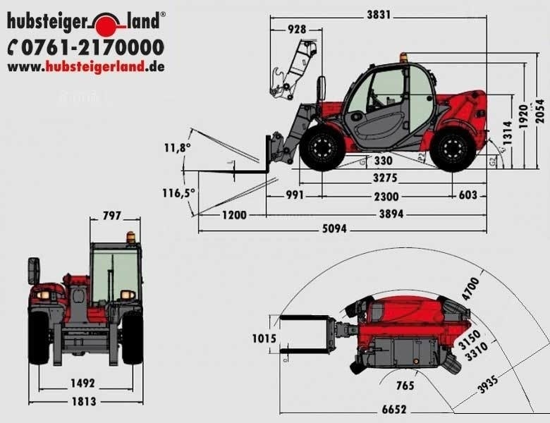 Dank seiner Knicklenkung beträgt der innere Wendekreis nur 1650 mm – deutlich weniger als der Standard für Maschinen seiner Klasse. Dadurch ist er ideal geeignet für Einsätze in Städten, Parkhäusern und auf großen Industriegeländen.